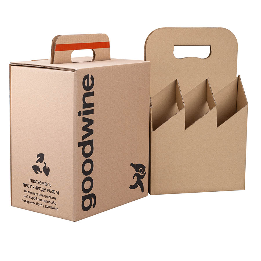 Саме у нас ви можете замовити упаковку для перенесення пляшок з гофрокартону, яка має безліч переваг: