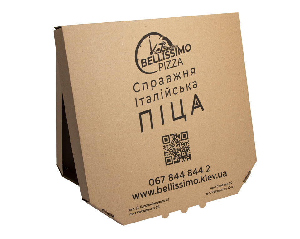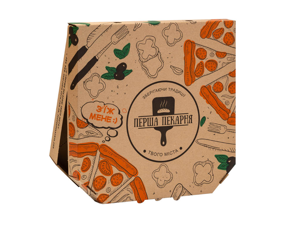 - Коробки для піци - виготовлені в різному розмірі та конфігурації, виконані в базових варіантах, а також з нанесенням потрібного вам логотипу.