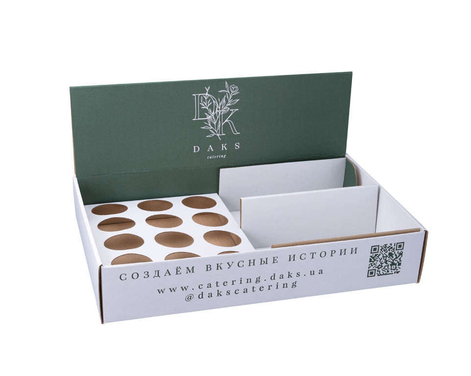 - Ящики для кондитерських виробів у різних форматах, за допомогою яких доставка ніжних кулінарних шедеврів буде здійснена максимально дбайливо.